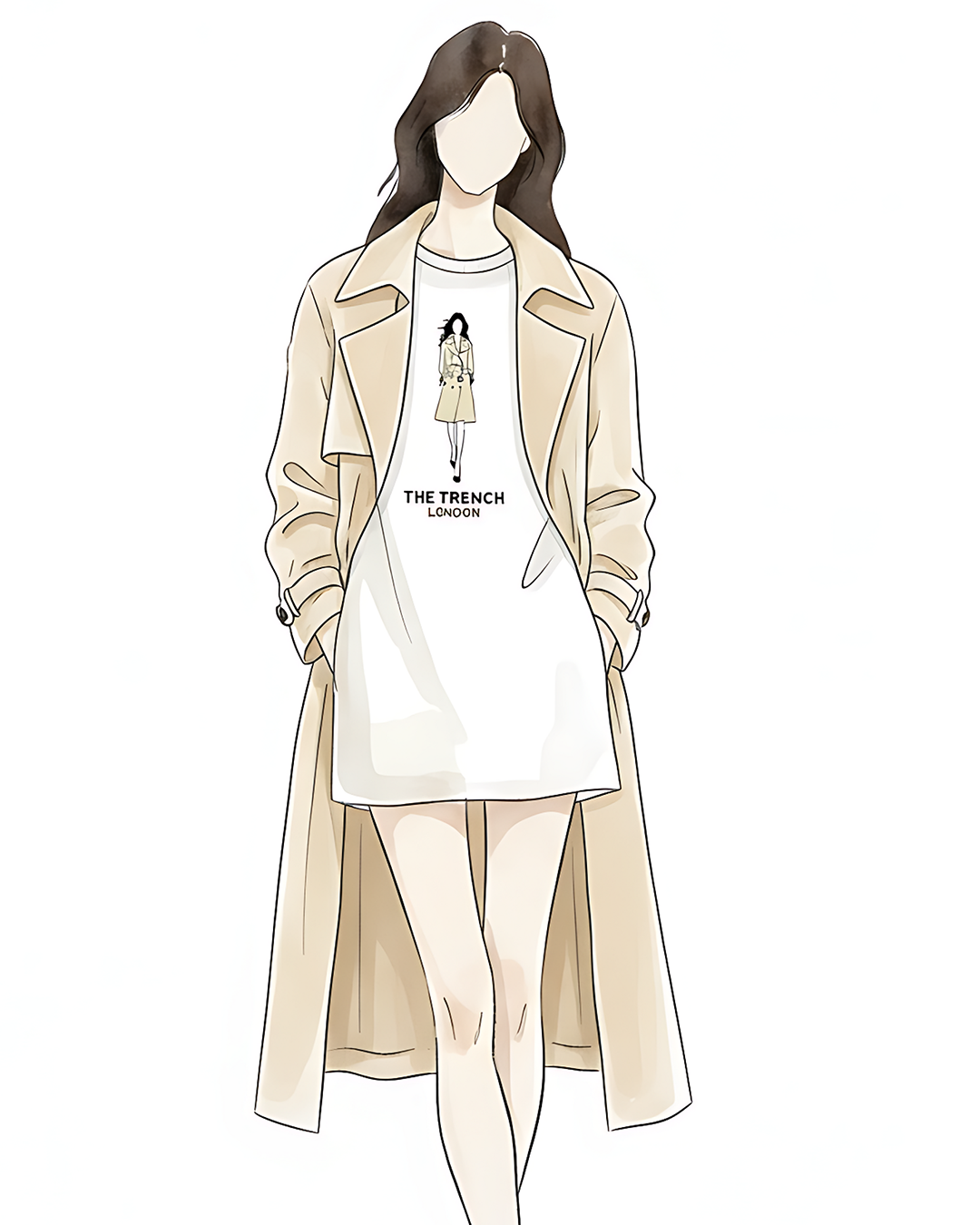 This design celebrates the trench coat, a timeless favorite for men and women.